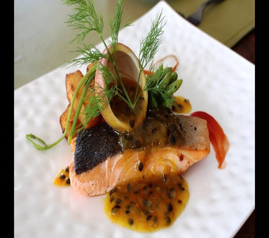 Nuestra famosa salsa pasión que acompañara perfectamente su plato fuerte de salmón, atún o pargo.