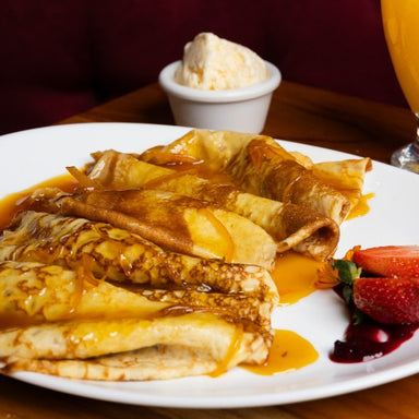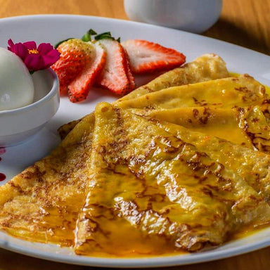 ¡La crêpe mas famosa de Francia! Salsa de naranja flambée con Cointreau y helado de vainilla.