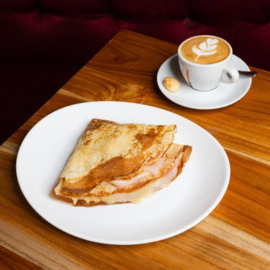 Crepe rellena con zucchini, berenjenas, tomate cherry, cebolla, salsa napolitana, perejil y queso mozzarella. Una combinación que te hará una exp...