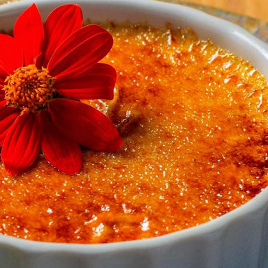 La famosa creme brulee, quemada por encima de azúcar morena y sazonada de Cointreau.
