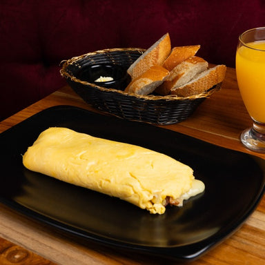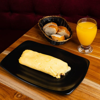 Nuestras originales y deliciosas tostadas francesas, de pan baguette mojado con huevo y leche, caliente, con sirope. ¡Una delicia!